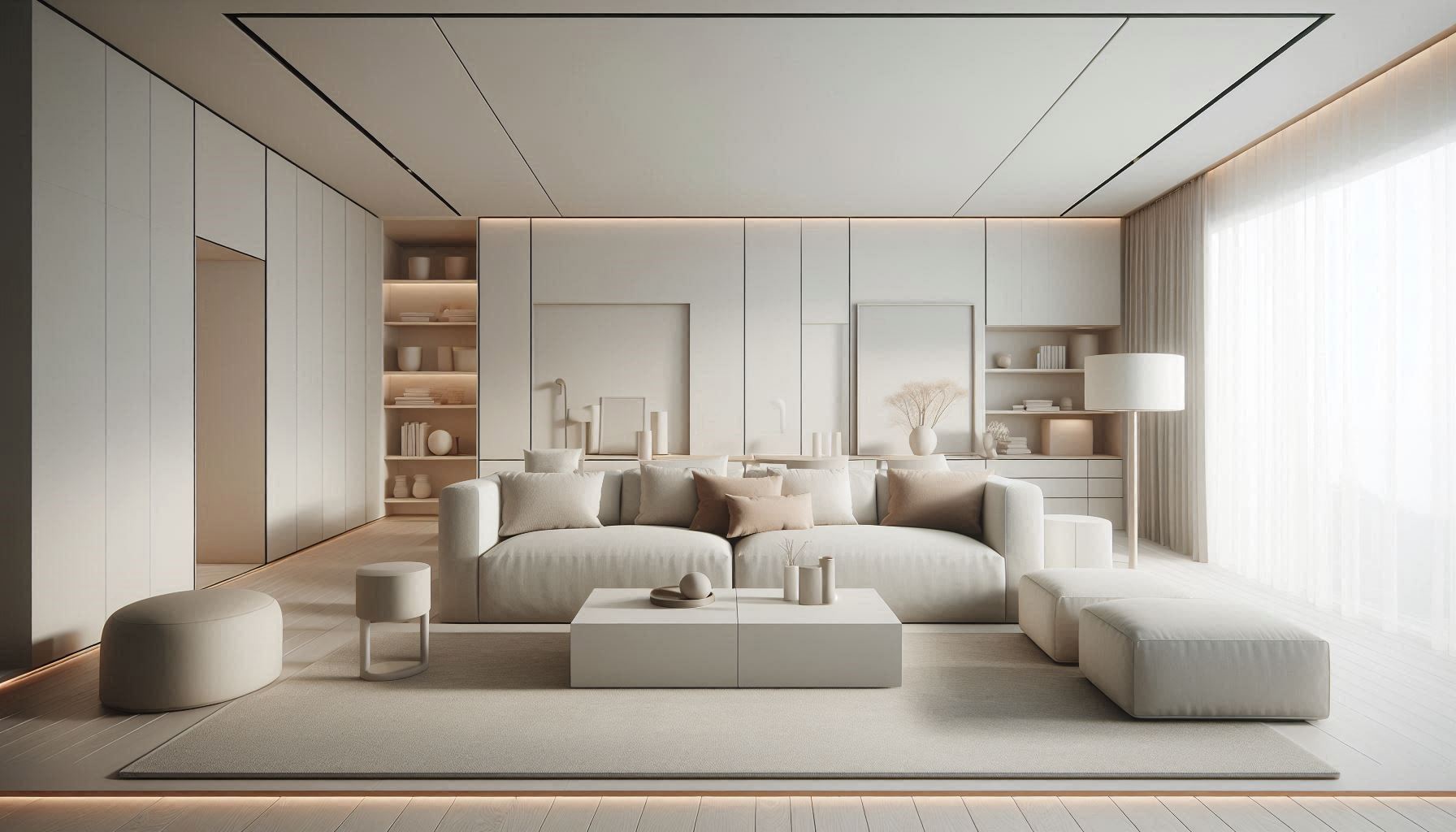 Ключ к стилю — порядок и свобода. Нет перегородок, плотных штор, громоздких шкафов, лишние предметы удаляются. Пространство выглядит чистым, живым. Гостиная играет роль центра дома, открыта для отдыха и общения. Эстетика держится на простоте, мягкой цветовой палитре, разумном количестве акцентов.